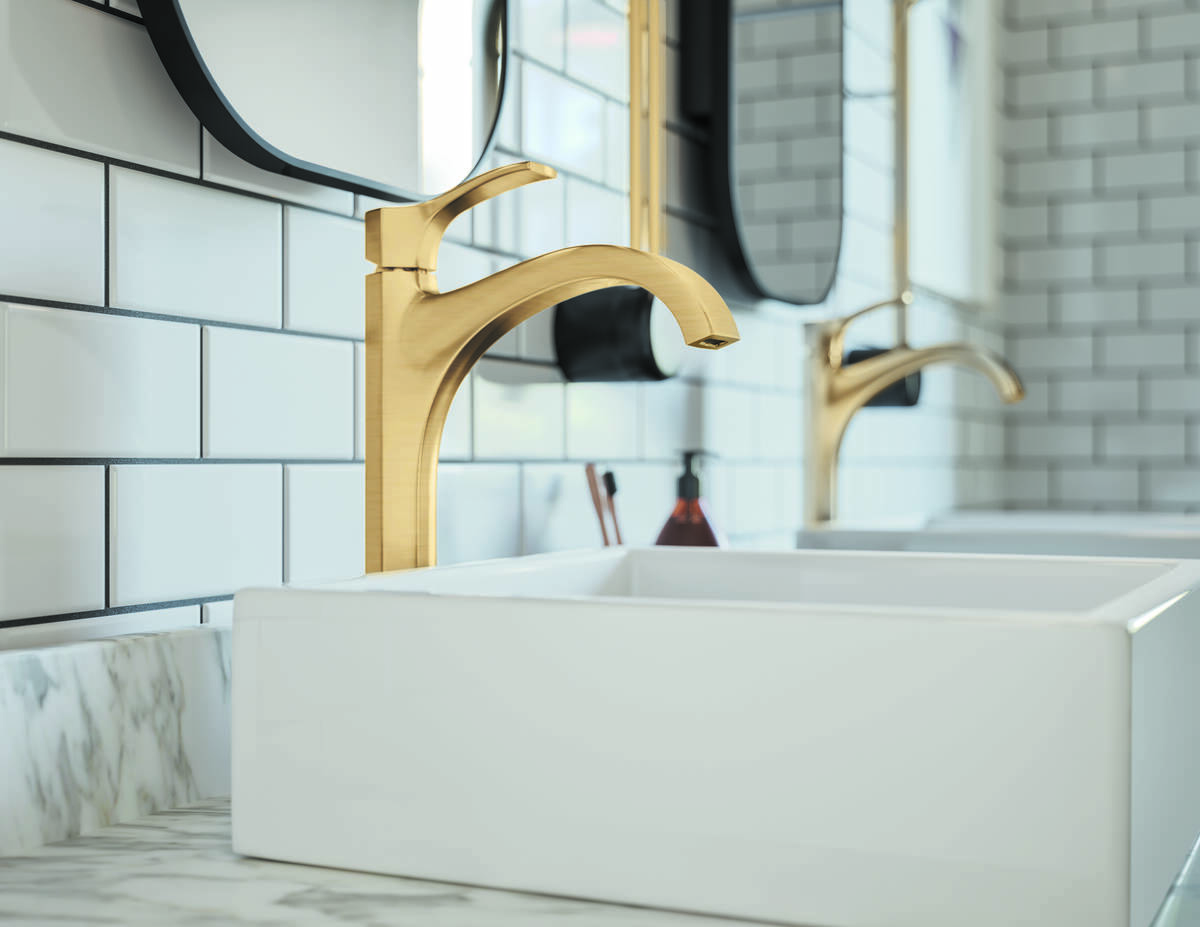 While Chrome is our standard finish, it remains to be a perfect choice for any bathroom and kitchen. The highly-popular Matte Black finish is key for modern Art Deco bathrooms, ideal for creating contrast and looks superb on white or light-colored countertops. Brushed Gold Optic, the finish that is quickly on the rise, will achieve a quintessential Art Deco look of luxury and opulence. Polished Nickel and Brushed Nickel can add warmth while contributing to an aunthentically classic or traditional look and feel.